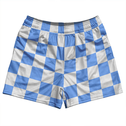 Product Story: Checkerboard 2.5 Inches Blue Carolina and White Rugby Shorts Made In USAProduct Description: Checkerboard 2.5 Inches Blue Carolina and White Rugby Shorts Made In USA Rep your, state, country or tribe in these fun Ruckus Rugby shorts. Rugby Shorts Polyester Sublimated Vibrant Print Premium Micro Fiber Side Pockets 4.5 Inch Inseam Elastic Drawstring Made In USA
