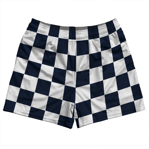 Product Story: Checkerboard 2.5 Inches Blue Navy and White Rugby Shorts Made In USAProduct Description: Checkerboard 2.5 Inches Blue Navy and White Rugby Shorts Made In USA Rep your, state, country or tribe in these fun Ruckus Rugby shorts. Rugby Shorts Polyester Sublimated Vibrant Print Premium Micro Fiber Side Pockets 4.5 Inch Inseam Elastic Drawstring Made In USA