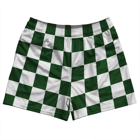 Product Story: Checkerboard 2.5 Inches Green Hunter and White Rugby Shorts Made In USAProduct Description: Checkerboard 2.5 Inches Green Hunter and White Rugby Shorts Made In USA Rep your, state, country or tribe in these fun Ruckus Rugby shorts. Rugby Shorts Polyester Sublimated Vibrant Print Premium Micro Fiber Side Pockets 4.5 Inch Inseam Elastic Drawstring Made In USA