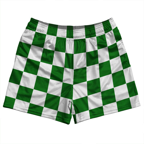 Product Story: Checkerboard 2.5 Inches Green Forest and White Rugby Shorts Made In USAProduct Description: Checkerboard 2.5 Inches Green Forest and White Rugby Shorts Made In USA Rep your, state, country or tribe in these fun Ruckus Rugby shorts. Rugby Shorts Polyester Sublimated Vibrant Print Premium Micro Fiber Side Pockets 4.5 Inch Inseam Elastic Drawstring Made In USA