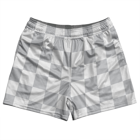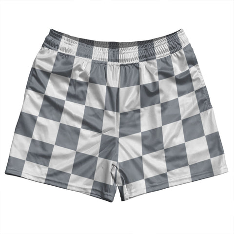 Product Story: Checkerboard 2.5 Inches Grey Medium and White Rugby Shorts Made In USAProduct Description: Checkerboard 2.5 Inches Grey Medium and White Rugby Shorts Made In USA Rep your, state, country or tribe in these fun Ruckus Rugby shorts. Rugby Shorts Polyester Sublimated Vibrant Print Premium Micro Fiber Side Pockets 4.5 Inch Inseam Elastic Drawstring Made In USA