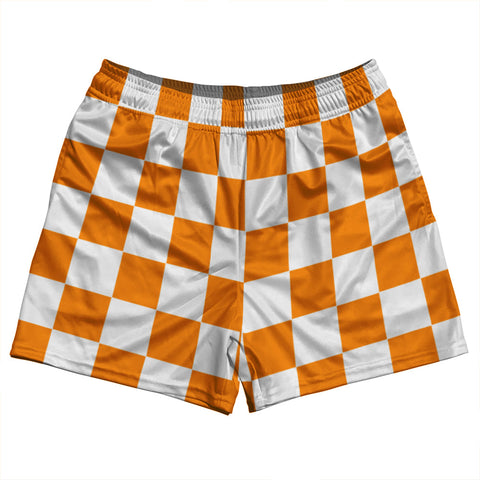 Product Story: Checkerboard 2.5 Inches Orange Tennessee and White Rugby Shorts Made In USAProduct Description: Checkerboard 2.5 Inches Orange Tennessee and White Rugby Shorts Made In USA Rep your, state, country or tribe in these fun Ruckus Rugby shorts. Rugby Shorts Polyester Sublimated Vibrant Print Premium Micro Fiber Side Pockets 4.5 Inch Inseam Elastic Drawstring Made In USA