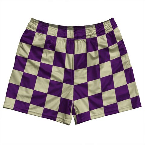 Product Story: Checkerboard 2.5 Inches Purple Medium and Vegas Gold Rugby Shorts Made In USAProduct Description: Checkerboard 2.5 Inches Purple Medium and Vegas Gold Rugby Shorts Made In USA Rep your, state, country or tribe in these fun Ruckus Rugby shorts. Rugby Shorts Polyester Sublimated Vibrant Print Premium Micro Fiber Side Pockets 4.5 Inch Inseam Elastic Drawstring Made In USA...