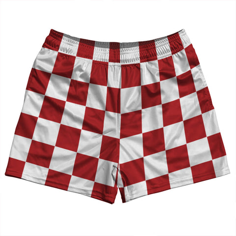 Product Story: Checkerboard 2.5 Inches Red Dark and White Rugby Shorts Made In USAProduct Description: Checkerboard 2.5 Inches Red Dark and White Rugby Shorts Made In USA Rep your, state, country or tribe in these fun Ruckus Rugby shorts. Rugby Shorts Polyester Sublimated Vibrant Print Premium Micro Fiber Side Pockets 4.5 Inch Inseam Elastic Drawstring Made In USA