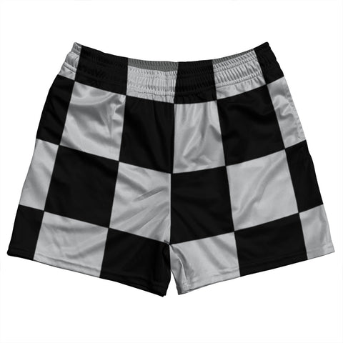 Product Story: Checkerboard 5 Inches Black and Grey Medium Rugby Shorts Made In USAProduct Description: Checkerboard 5 Inches Black and Grey Medium Rugby Shorts Made In USA Rep your, state, country or tribe in these fun Ruckus Rugby shorts. Rugby Shorts Polyester Sublimated Vibrant Print Premium Micro Fiber Side Pockets 4.5 Inch Inseam Elastic Drawstring Made In USA
