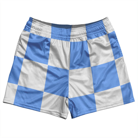 Product Story: Checkerboard 5 Inches Blue Carolina and White Rugby Shorts Made In USAProduct Description: Checkerboard 5 Inches Blue Carolina and White Rugby Shorts Made In USA Rep your, state, country or tribe in these fun Ruckus Rugby shorts. Rugby Shorts Polyester Sublimated Vibrant Print Premium Micro Fiber Side Pockets 4.5 Inch Inseam Elastic Drawstring Made In USA