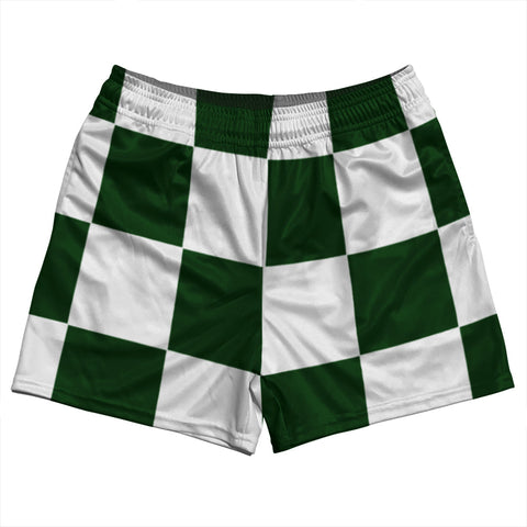 Product Story: Checkerboard 5 Inches Green Forest and White Rugby Shorts Made In USAProduct Description: Checkerboard 5 Inches Green Forest and White Rugby Shorts Made In USA Rep your, state, country or tribe in these fun Ruckus Rugby shorts. Rugby Shorts Polyester Sublimated Vibrant Print Premium Micro Fiber Side Pockets 4.5 Inch Inseam Elastic Drawstring Made In USA
