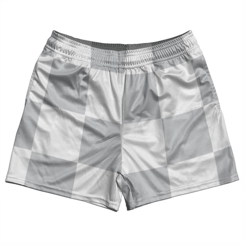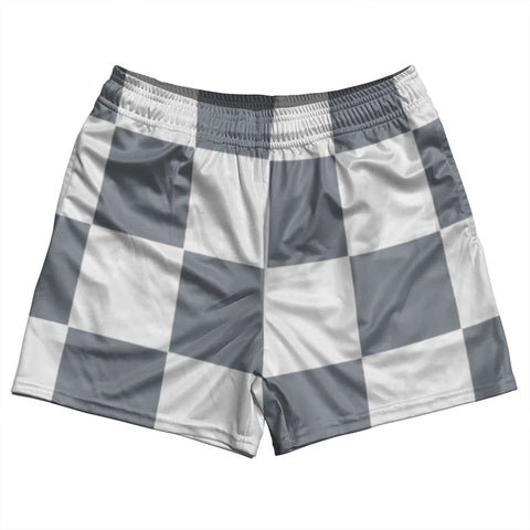 Product Story: Checkerboard 5 Inches Grey Medium and White Rugby Shorts Made In USAProduct Description: Checkerboard 5 Inches Grey Medium and White Rugby Shorts Made In USA Rep your, state, country or tribe in these fun Ruckus Rugby shorts. Rugby Shorts Polyester Sublimated Vibrant Print Premium Micro Fiber Side Pockets 4.5 Inch Inseam Elastic Drawstring Made In USA