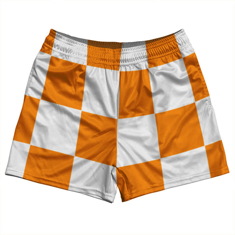 Product Story: Checkerboard 5 Inches Orange Tennessee and White Rugby Shorts Made In USAProduct Description: Checkerboard 5 Inches Orange Tennessee and White Rugby Shorts Made In USA Rep your, state, country or tribe in these fun Ruckus Rugby shorts. Rugby Shorts Polyester Sublimated Vibrant Print Premium Micro Fiber Side Pockets 4.5 Inch Inseam Elastic Drawstring Made In USA