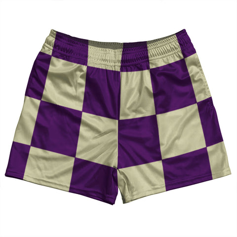 Product Story: Checkerboard 5 Inches Purple Medium and Vegas Gold Rugby Shorts Made In USAProduct Description: Checkerboard 5 Inches Purple Medium and Vegas Gold Rugby Shorts Made In USA Rep your, state, country or tribe in these fun Ruckus Rugby shorts. Rugby Shorts Polyester Sublimated Vibrant Print Premium Micro Fiber Side Pockets 4.5 Inch Inseam Elastic Drawstring Made In USA...