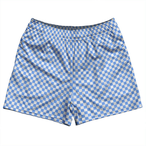 Product Story: Checkerboard Half Inch Blue Carolina and White Rugby Shorts Made In USAProduct Description: Checkerboard Half Inch Blue Carolina and White Rugby Shorts Made In USA Rep your, state, country or tribe in these fun Ruckus Rugby shorts. Rugby Shorts Polyester Sublimated Vibrant Print Premium Micro Fiber Side Pockets 4.5 Inch Inseam Elastic Drawstring Made In USA