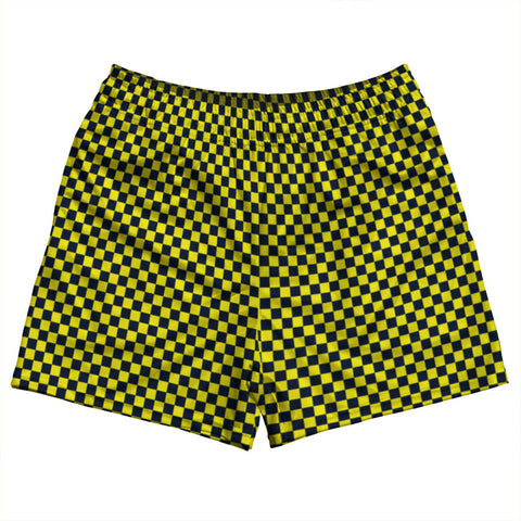 Product Story: Checkerboard Half Inch Black and Yellow Rugby Shorts Made In USAProduct Description: Checkerboard Half Inch Black and Yellow Rugby Shorts Made In USA Rep your, state, country or tribe in these fun Ruckus Rugby shorts. Rugby Shorts Polyester Sublimated Vibrant Print Premium Micro Fiber Side Pockets 4.5 Inch Inseam Elastic Drawstring Made In USA