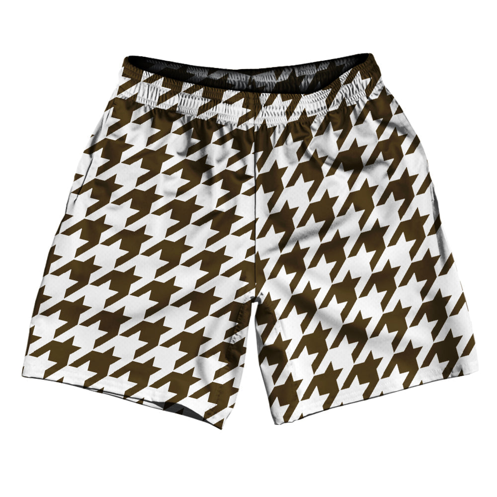 Brown Dark And White Houndstooth Athletic Running Fitness Exercise Shorts 7" Inseam Shorts Made In USA