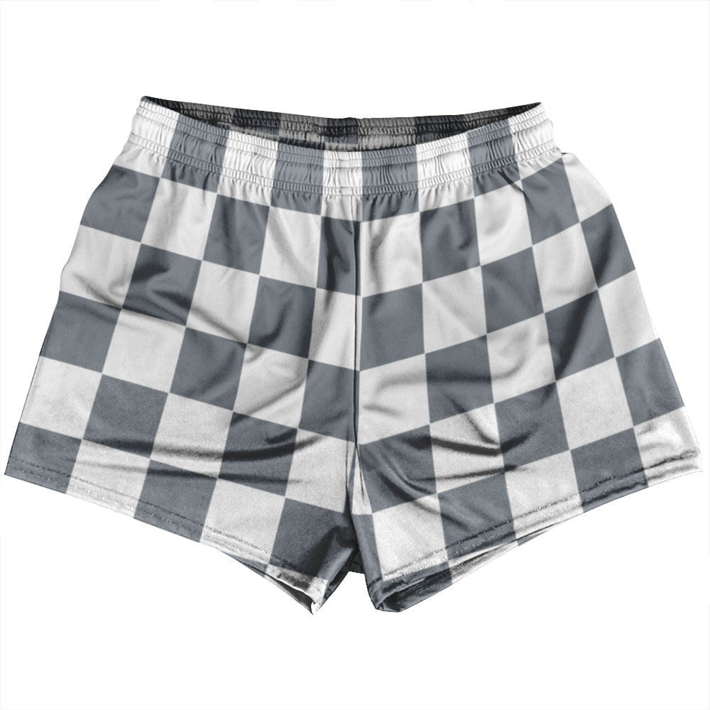 Checkerboard 2.5 Inches Grey Dark and White Womens & Girls Sport Shorts End Made In USA