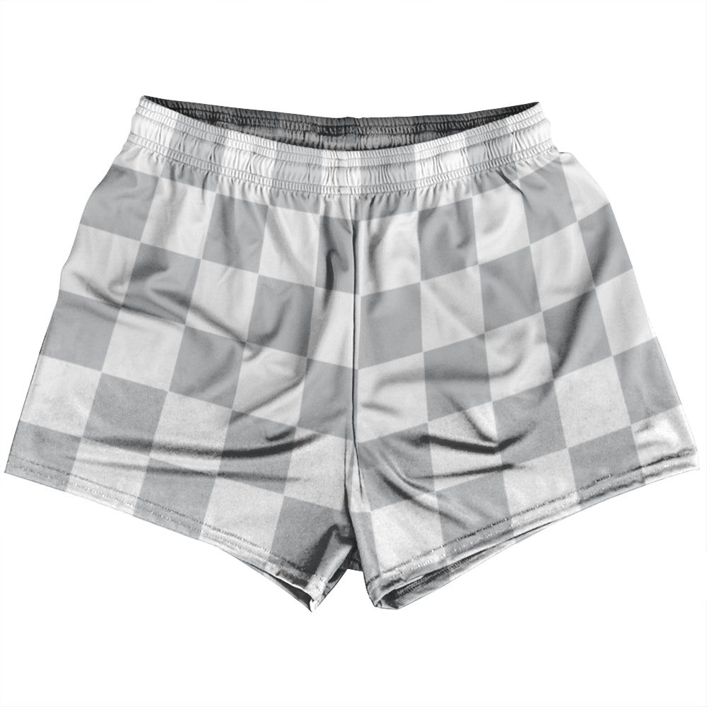 Checkerboard 2.5 Inches Grey Medium and White Womens & Girls Sport Shorts End Made In USA