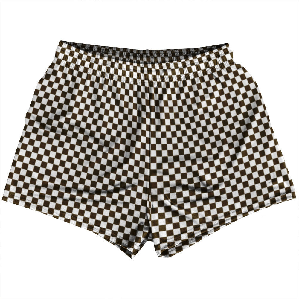Checkerboard Half Inch Brown Dark and White Womens & Girls Sport Shorts End Made In USA