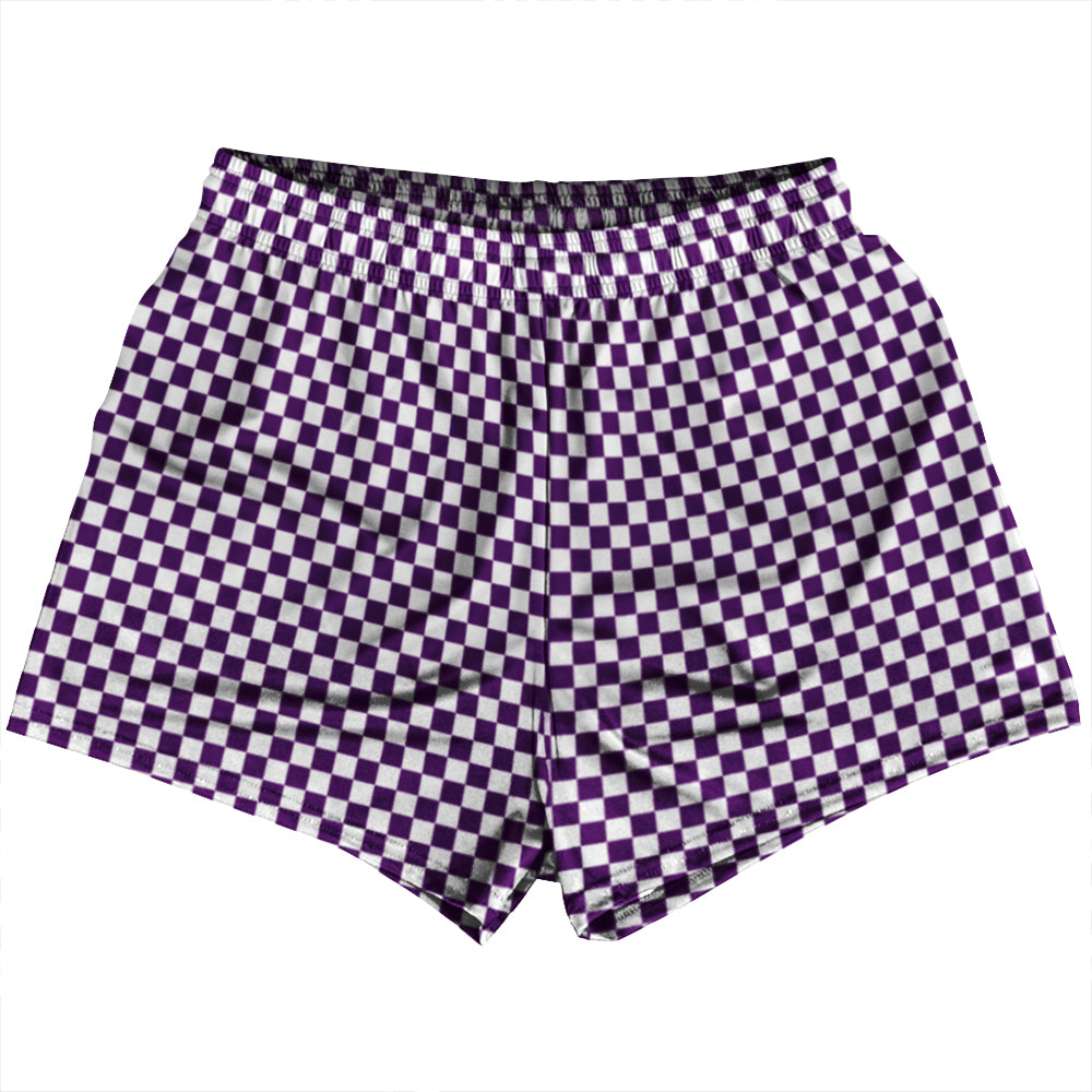 Checkerboard Half Inch Purple Medium and White Womens & Girls Sport Shorts End Made In USA