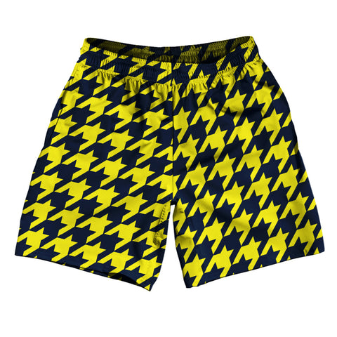 Product Story: Blue Navy And Yellow Bright Houndstooth Soccer Shorts Made In USAProduct Description: Blue Navy And Yellow Bright Houndstooth Soccer Shorts Made In USA Athletic Material Lacrosse Shorts Premium Lacrosse Product Made In USA