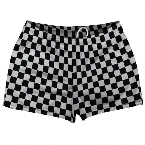 Product Story: Checkerboard 1 Inch Black and Grey Medium Shorty Short Gym Shorts 2.5" Inseam Made In USAProduct Description: Checkerboard 1 Inch Black and Grey Medium Shorty Short Gym Shorts 2.5" Inseam Made In USA Men's Short Shorts 2.5 Inseam No Pockets Athletic Microfiber Great For Inspiring Baby Making, Rugby, Running, Hoops, Racket Sports, Gym Class and Basket Weaving. Draw...