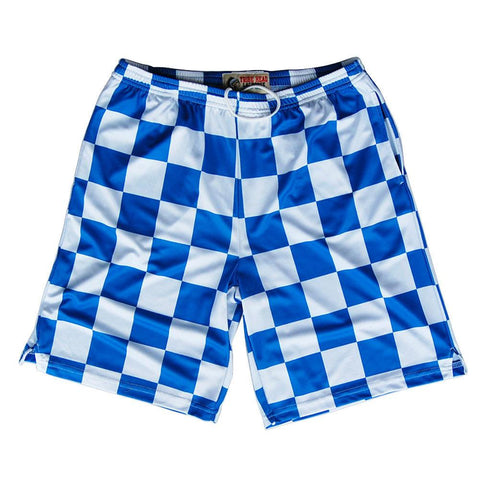 Product Story: Royal & White Checkerboard Sublimated Lacrosse Shorts Product Details:Sublimated Lacrosse Shorts?ˆ? Sublimated Lacrosse Shorts?ˆ? 100% Polyester?ˆ? Made in USA?ˆ? Shorts With Side Pockets