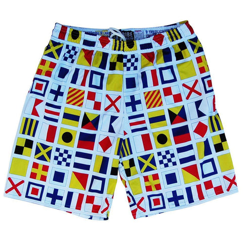 Product Story: Rhode Island US State Flag Swim Shorts 7" Made in USAProduct Description: Rhode Island US State Flag Swim Shorts 7" Made in USA Stripe 2.50" Inseam Swim Shorts Swim Trunks Board Shorts Bathing Suits Swim Suits Quick Drying Material Stretch Polyester Elastic Waistband Drawstring Side Pockets Made In USA