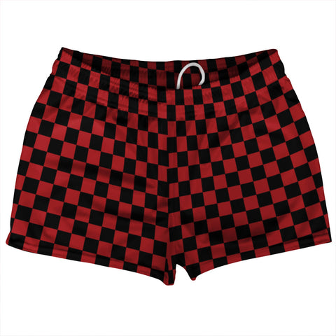 Product Story: Checkerboard 1 Inch Black and Red Dark Shorty Short Gym Shorts 2.5" Inseam Made In USAProduct Description: Checkerboard 1 Inch Black and Red Dark Shorty Short Gym Shorts 2.5" Inseam Made In USA Men's Short Shorts 2.5 Inseam No Pockets Athletic Microfiber Great For Inspiring Baby Making, Rugby, Running, Hoops, Racket Sports, Gym Class and Basket Weaving. Draw...