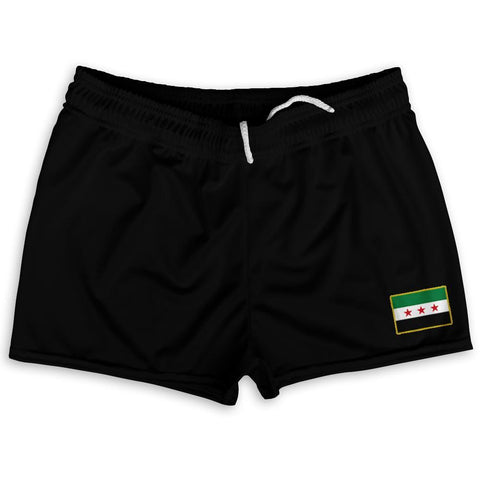 Product Story: Syria Country Heritage Flag Shorty Short Gym Shorts 2.5" Inseam Made In USAProduct Description: Syria Country Heritage Flag Shorty Short Gym Shorts 2.5" Inseam Made In USA Mens Short Shorts 2.5 Inseam No Pockets Athletic Microfiber Great For Inspiring Baby Making, Rugby, Running, Hoops, Racket Sports, Gym Class and Basket Weaving. Draw String Durable Made in USA