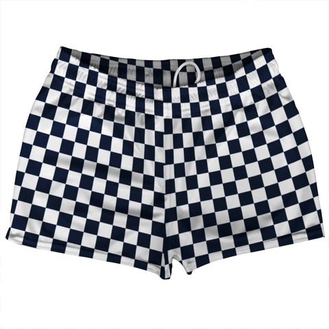 Product Story: Checkerboard 1 Inch Blue Navy and White Shorty Short Gym Shorts 2.5" Inseam Made In USAProduct Description: Checkerboard 1 Inch Blue Navy and White Shorty Short Gym Shorts 2.5" Inseam Made In USA Men's Short Shorts 2.5 Inseam No Pockets Athletic Microfiber Great For Inspiring Baby Making, Rugby, Running, Hoops, Racket Sports, Gym Class and Basket Weaving. Draw...
