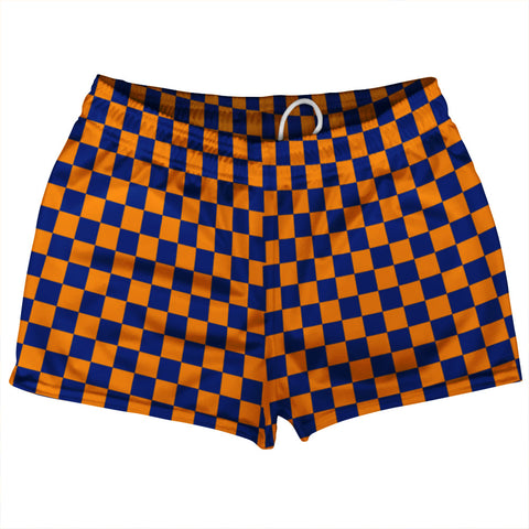 Product Story: Checkerboard 1 Inch Blue Royal and Tennessee Orange Shorty Short Gym Shorts 2.5" Inseam Made In USAProduct Description: Checkerboard 1 Inch Blue Royal and Tennessee Orange Shorty Short Gym Shorts 2.5" Inseam Made In USA Men's Short Shorts 2.5 Inseam No Pockets Athletic Microfiber Great For Inspiring Baby Making, Rugby, Running, Hoops, Racket Sports, Gym Class and Basket...