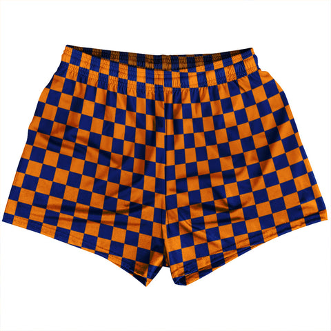 Product Story: Checkerboard 1 Inch Blue Royal and Tennessee Orange Womens & Girls Sport Shorts End Made In USAProduct Description: Checkerboard 1 Inch Blue Royal and Tennessee Orange Womens & Girls Sport Shorts End Made In USA Athletic Shorts Micro-Fiber Polyester Cooling Material Premium Lacrosse Product Elastic Drawstring Made in USA