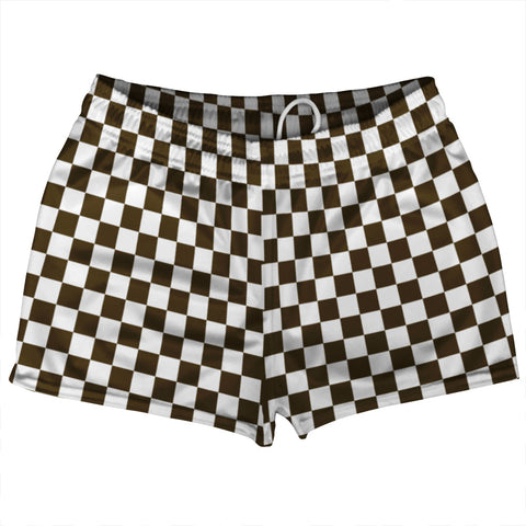Product Story: Checkerboard 1 Inch Brown Dark and White Womens & Girls Sport Shorts End Made In USAProduct Description: Checkerboard 1 Inch Brown Dark and White Womens & Girls Sport Shorts End Made In USA Athletic Shorts Micro-Fiber Polyester Cooling Material Premium Lacrosse Product Elastic Drawstring Made in USA