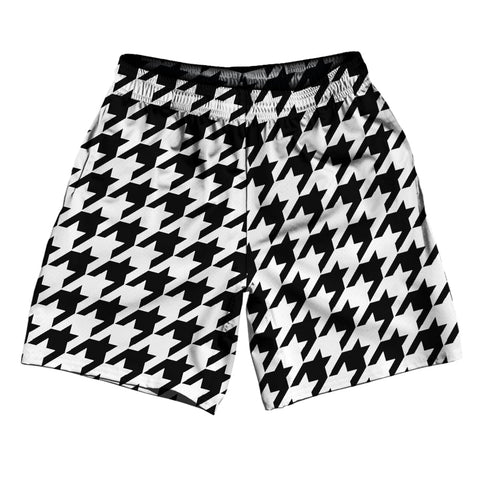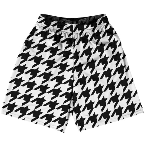 Product Story: Black And White Houndstooth Basketball Practice Shorts Made In USAProduct Description: Black And White Houndstooth Basketball Practice Shorts Made In USA Basketball Apparel Deep Pockets 100% Micro-Fiber Polyester Made In USA