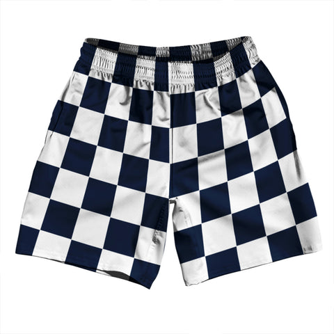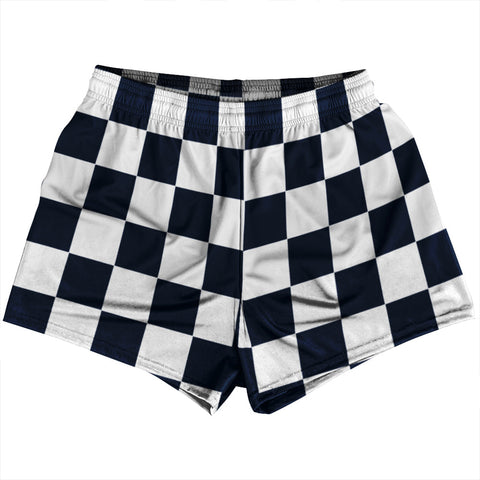 Product Story: Checkerboard 2.5 Inches Blue Navy and White Rugby Shorts Made In USAProduct Description: Checkerboard 2.5 Inches Blue Navy and White Rugby Shorts Made In USA Rep your, state, country or tribe in these fun Ruckus Rugby shorts. Rugby Shorts Polyester Sublimated Vibrant Print Premium Micro Fiber Side Pockets 4.5 Inch Inseam Elastic Drawstring Made In USA