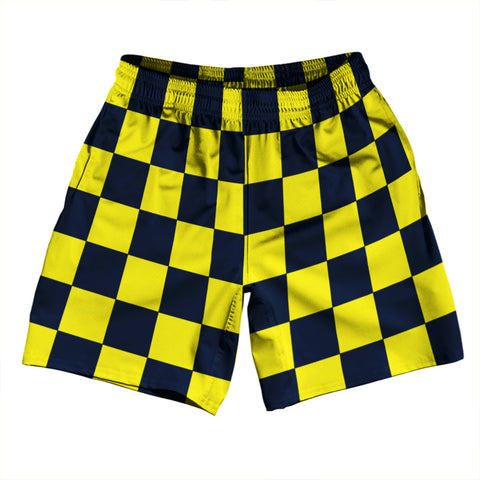 Product Story: Checkerboard 2.5 Inches Blue Navy and Yellow Bright Soccer Shorts Made In USAProduct Description: Checkerboard 2.5 Inches Blue Navy and Yellow Bright Soccer Shorts Made In USA Athletic Material Lacrosse Shorts Premium Lacrosse Product Made in USA