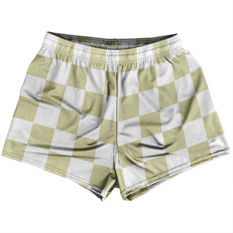 Product Story: Checkerboard 2.5 Inches Vegas Gold and White Shorty Short Gym Shorts 2.5" Inseam Made In USAProduct Description: Checkerboard 2.5 Inches Vegas Gold and White Shorty Short Gym Shorts 2.5" Inseam Made In USA Men's Short Shorts 2.5 Inseam No Pockets Athletic Microfiber Great For Inspiring Baby Making, Rugby, Running, Hoops, Racket Sports, Gym Class and Basket Weaving. Draw...