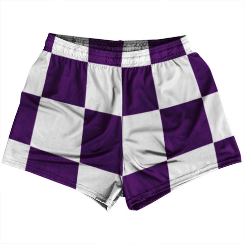 Product Story: Checkerboard 5 Inches Purple Medium and White Womens & Girls Sport Shorts End Made In USAProduct Description: Checkerboard 5 Inches Purple Medium and White Womens & Girls Sport Shorts End Made In USA Athletic Shorts Micro-Fiber Polyester Cooling Material Premium Lacrosse Product Elastic Drawstring Made in USA