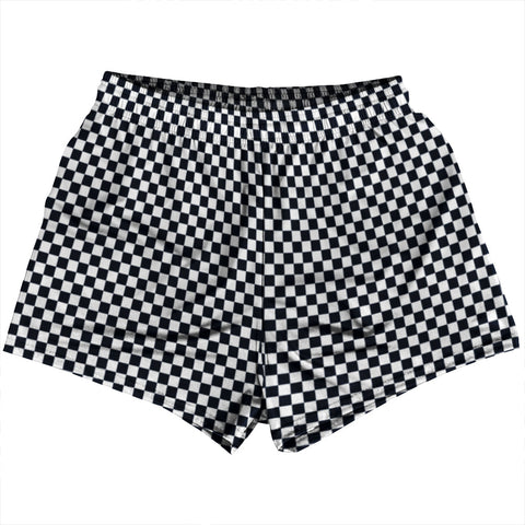 Product Story: Checkerboard Half Inch Blue Navy Almost Black and White Shorty Short Gym Shorts 2.5" Inseam Made In USAProduct Description: Checkerboard Half Inch Blue Navy Almost Black and White Shorty Short Gym Shorts 2.5" Inseam Made In USA Men's Short Shorts 2.5 Inseam No Pockets Athletic Microfiber Great For Inspiring Baby Making, Rugby, Running, Hoops, Racket Sports, Gym Class...