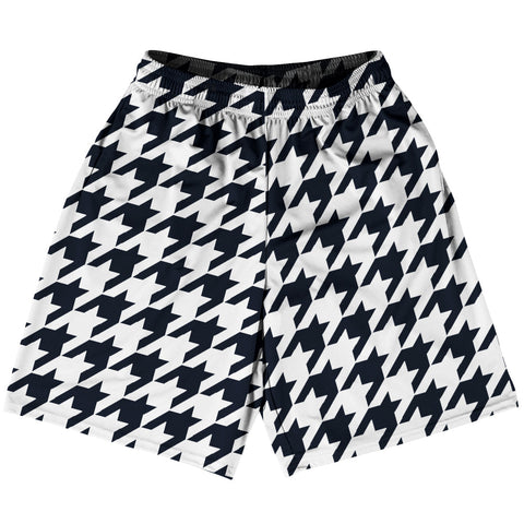 Product Story: Blue Navy Almost Black And White Houndstooth Basketball Practice Shorts Made In USAProduct Description: Blue Navy Almost Black And White Houndstooth Basketball Practice Shorts Made In USA Basketball Apparel Deep Pockets 100% Micro-Fiber Polyester Made In USA
