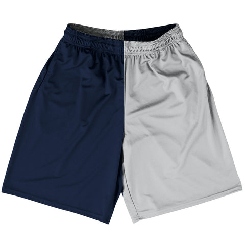 Product Story: Blue Navy And Grey Medium Quad Color Basketball Practice Shorts Made In USAProduct Description: Blue Navy And Grey Medium Quad Color Basketball Practice Shorts Made In USA Basketball Apparel Deep Pockets 100% Micro-Fiber Polyester Made In USA