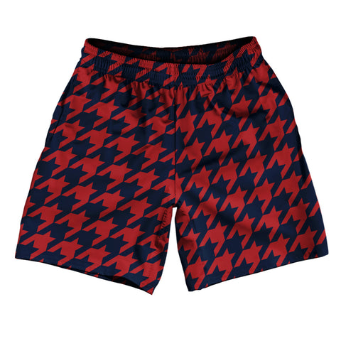 Product Story: Blue Navy And Red Dark Houndstooth Basketball Practice Shorts Made In USAProduct Description: Blue Navy And Red Dark Houndstooth Basketball Practice Shorts Made In USA Basketball Apparel Deep Pockets 100% Micro-Fiber Polyester Made In USA