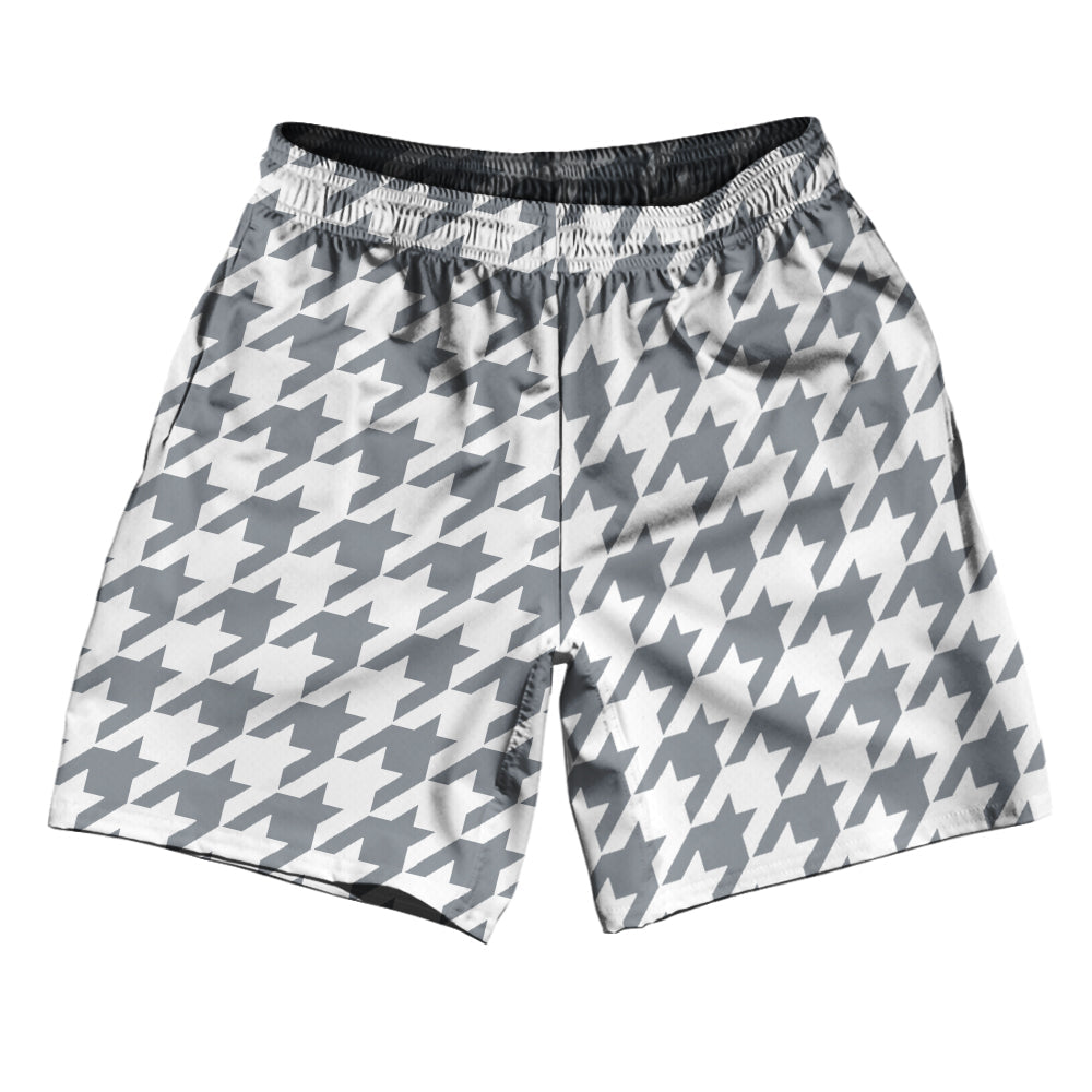 - Grey Dark And White Houndstooth Soccer Shorts Made In USA