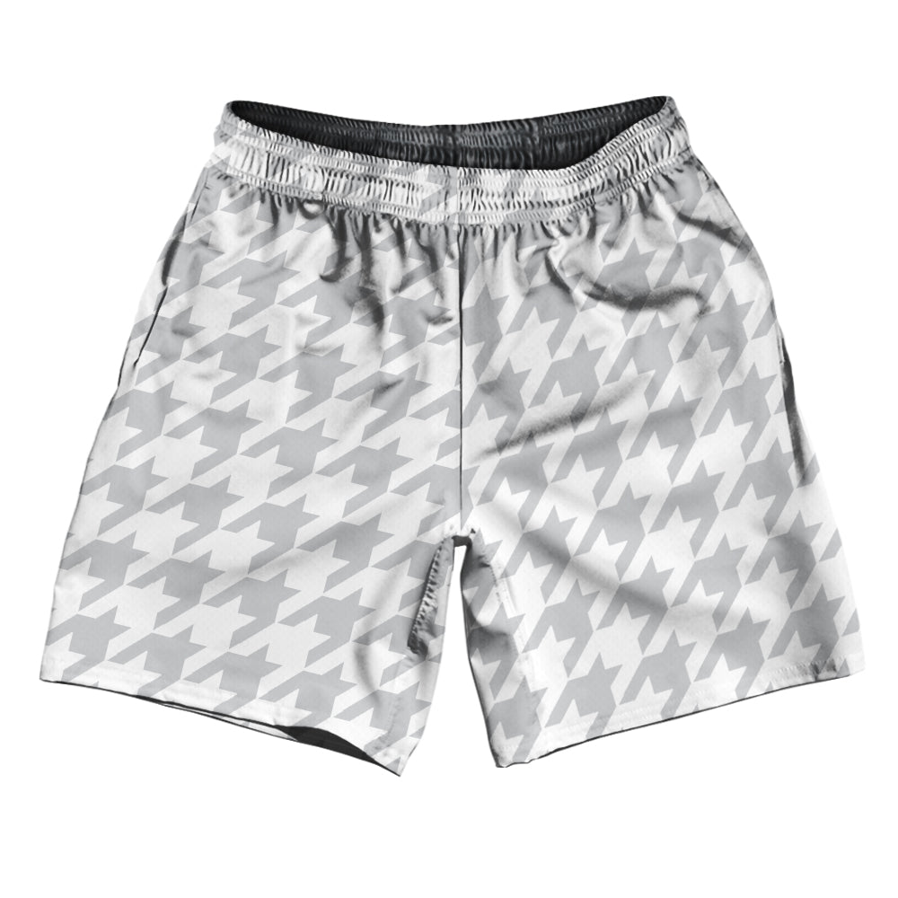 • Grey Medium And White Houndstooth Soccer Shorts Made In USA
