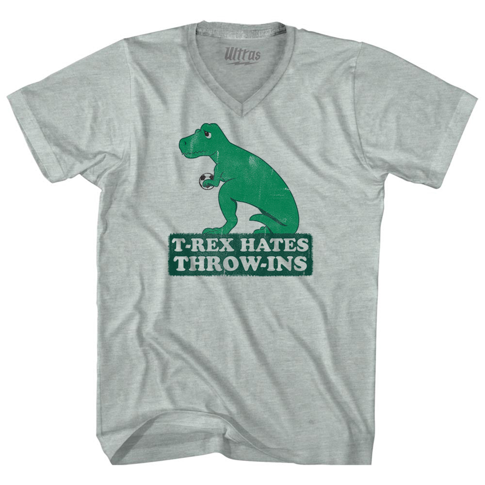 T-Rex Hates Soccer Throw Ins Adult Tri-Blend V-neck T-shirt