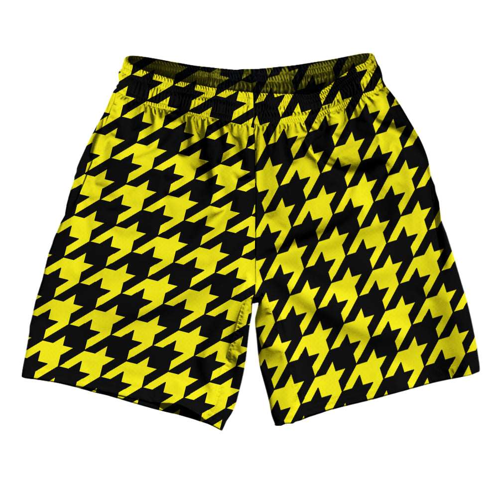 • Yellow Bright And Black Houndstooth Soccer Shorts Made In USA