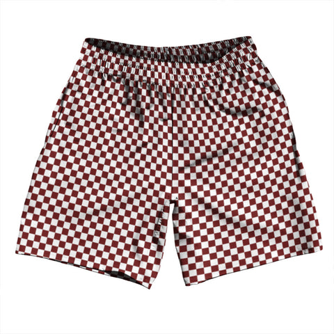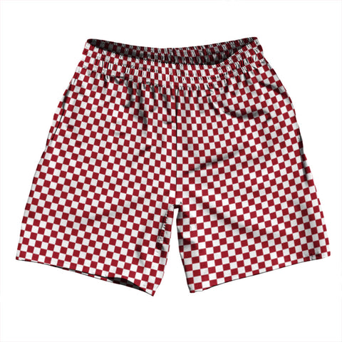 Product Story: Checkerboard Half Inch Red Maroon and White Soccer Shorts Made In USAProduct Description: Checkerboard Half Inch Red Maroon and White Soccer Shorts Made In USA Athletic Material Lacrosse Shorts Premium Lacrosse Product Made in USA