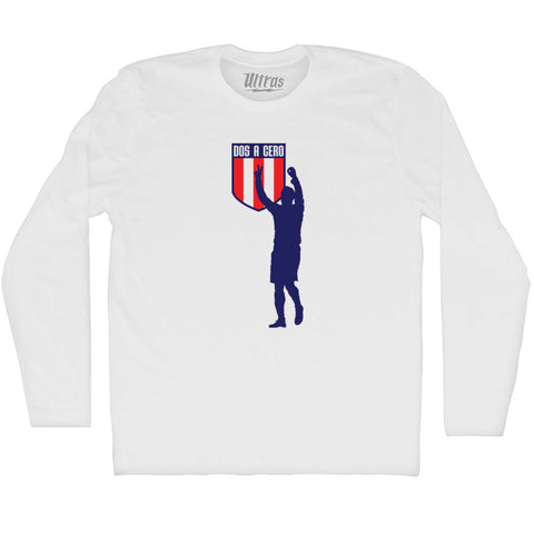 Product Story: Dos A Cero 2-0 Silhouette USA Soccer Win Over Mexico Adult Cotton Long Sleeve T-shirtProduct Description: Dos A Cero 2-0 Silhouette USA Soccer Win Over Mexico Adult Cotton Long Sleeve T-shirt Cotton (90% Cotton &10% Polyester) Buttery Smooth Soft Material Medium Weight Tee Soft Hand Print