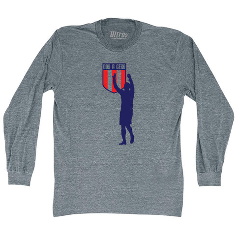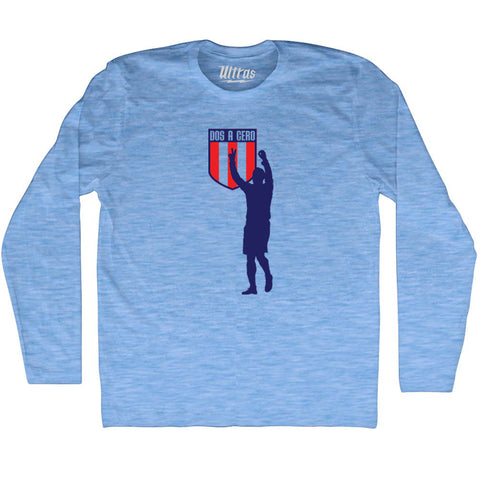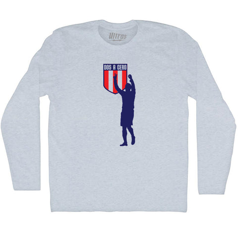 Product Story: Dos A Cero 2-0 Silhouette USA Soccer Win Over Mexico Adult Tri-Blend Long Sleeve T-shirtProduct Description: Dos A Cero 2-0 Silhouette USA Soccer Win Over Mexico Adult Tri-Blend Long Sleeve T-shirt Tri-Blend (Polyester, Rayon, Cotton) Buttery Smooth Soft Material Medium Weight Tee Soft Hand Print
