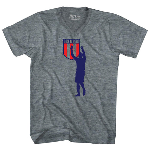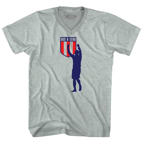 Product Story: Dos A Cero 2-0 Silhouette USA Soccer Win Over Mexico Adult Tri-Blend V-neck T-shirtProduct Description: Dos A Cero 2-0 Silhouette USA Soccer Win Over Mexico Adult Tri-Blend V-neck T-shirt Tri-Blend (Polyester, Rayon, Cotton) Buttery Smooth Soft Material Medium Weight Tee Soft Hand Print