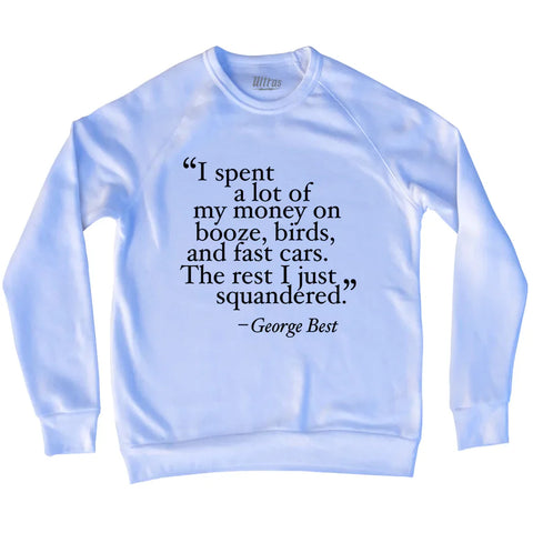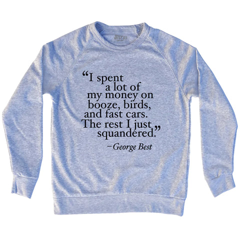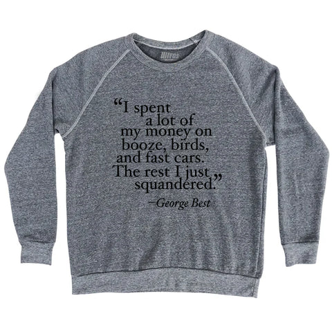Product Story: George Best Quote Soccer Adult Tri-Blend SweatshirtProduct Description: George Best Quote Soccer Adult Tri-Blend Sweatshirt Tri-Blend (Polyester, Rayon, Cotton) Buttery Smooth Soft Material Medium Weight Tee Soft Hand Print