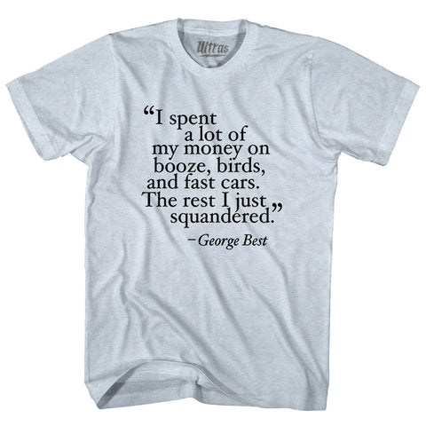 Product Story: George Best Quote Soccer Adult Tri-Blend T-shirtProduct Description: George Best Quote Soccer Adult Tri-Blend T-shirt Tri-Blend (Polyester, Rayon, Cotton) Buttery Smooth Soft Material Medium Weight Tee Soft Hand Print